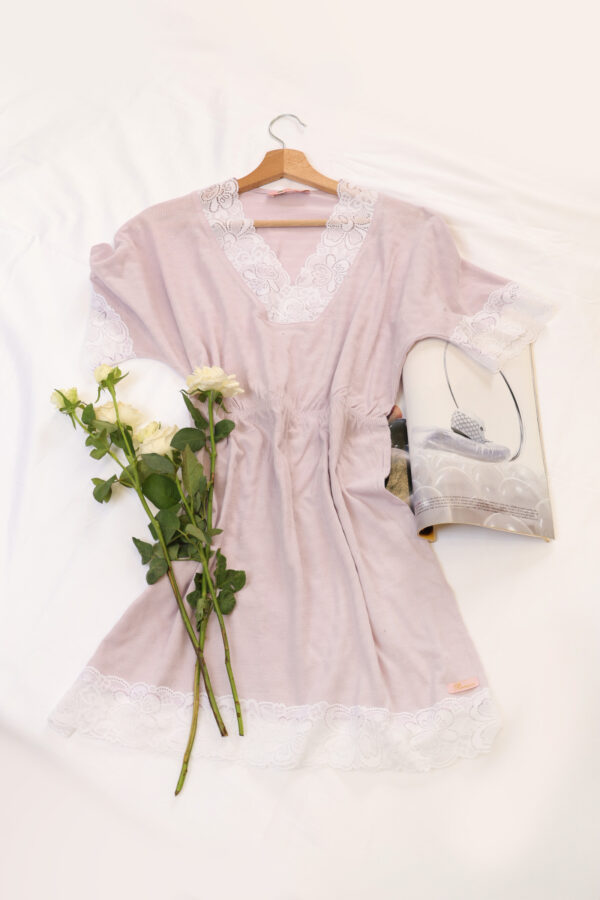 Indulge in the ultimate combination of style and comfort with our Short Sleeve Floral Lace Sleep Dress. The Sleep Dress with a V-shaped neckline, lace trim around the neckline, and Straight-lace trim at the sides, this Sleep Dress will keep you snug and cozy all night long.